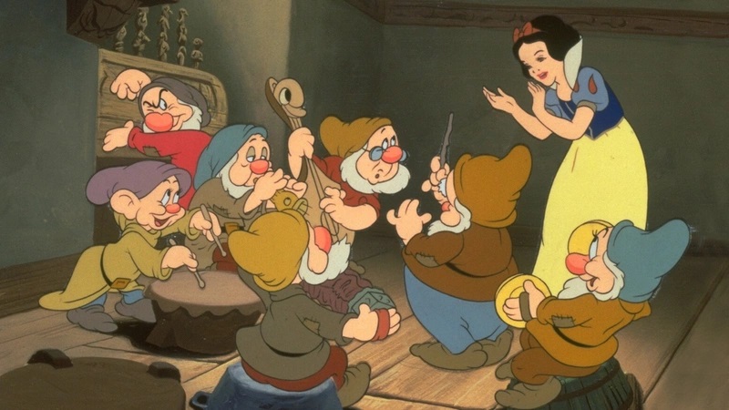 و در این راه هفت کوتوله معدنچی را یافته و در مدت کوتاهی عضوی از خانواده آنها میشود.